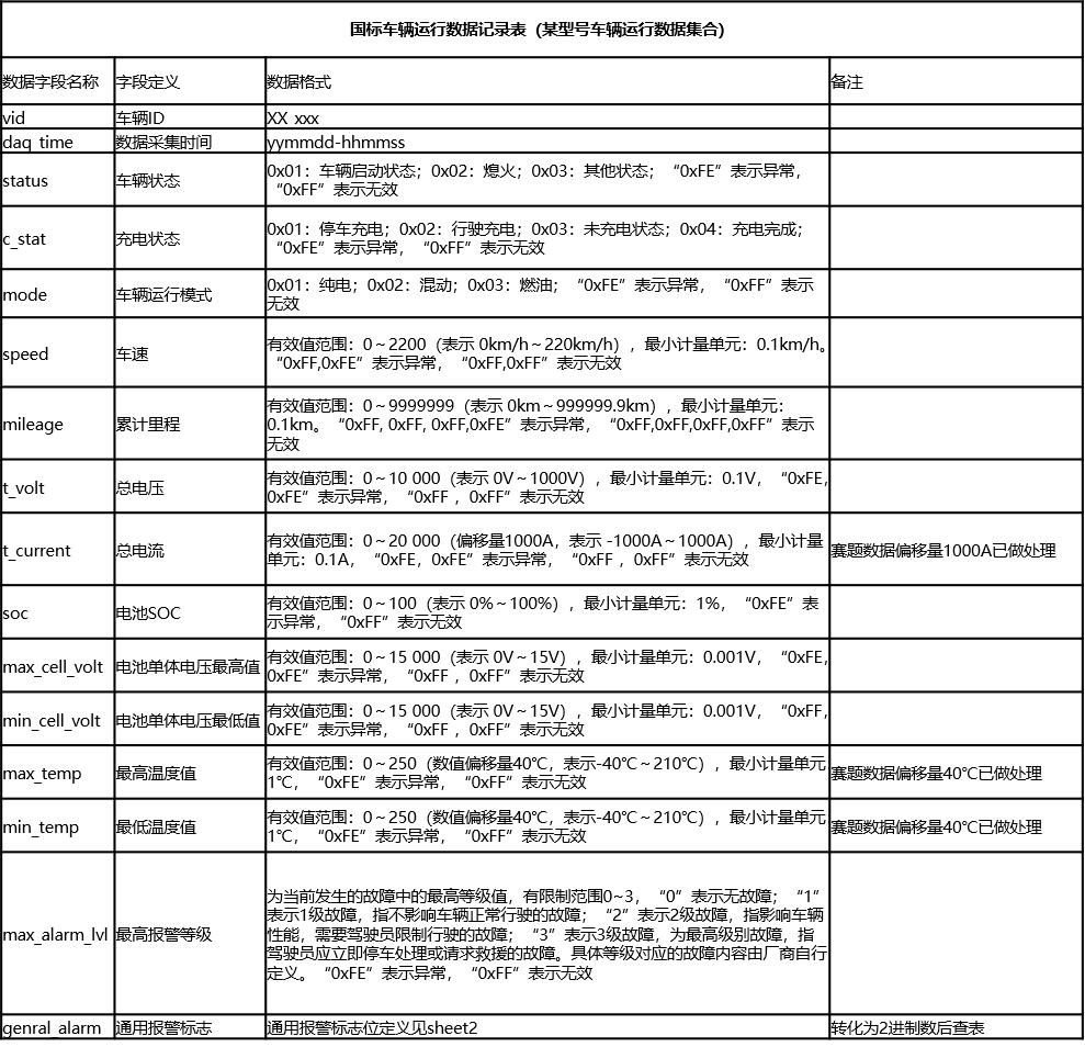 数据范围:提取2019年10月-12月北京市100辆纯电动私人乘用车运行数据。数据字段内容如下: