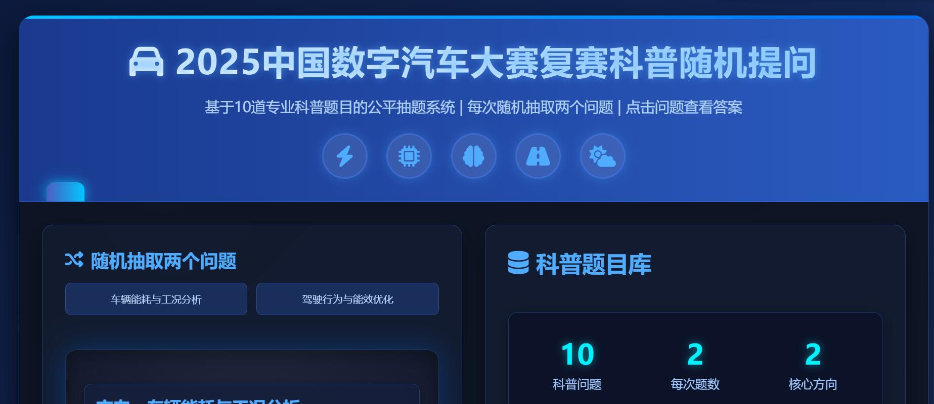 为进一步考察团队的综合能力,复赛还加入随机提问环节,针对今年创新组新能源汽车续驶里程影响因素,组委会整理了科普类图库,系统随机抽选一题,要求团队用通俗易懂的语言进行解答,展现技术与表达的完美结合。
